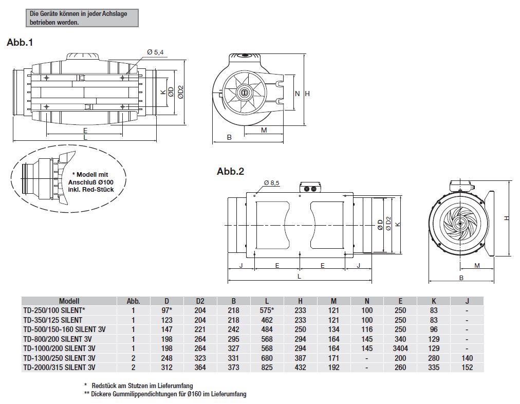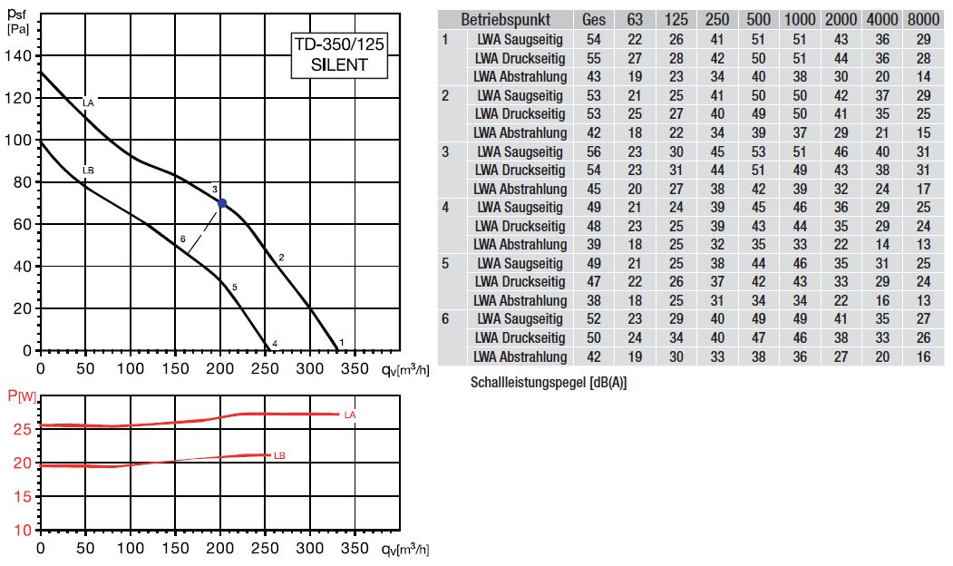 - Volumenstrom: 360/300 m3/h (freiblasend)
