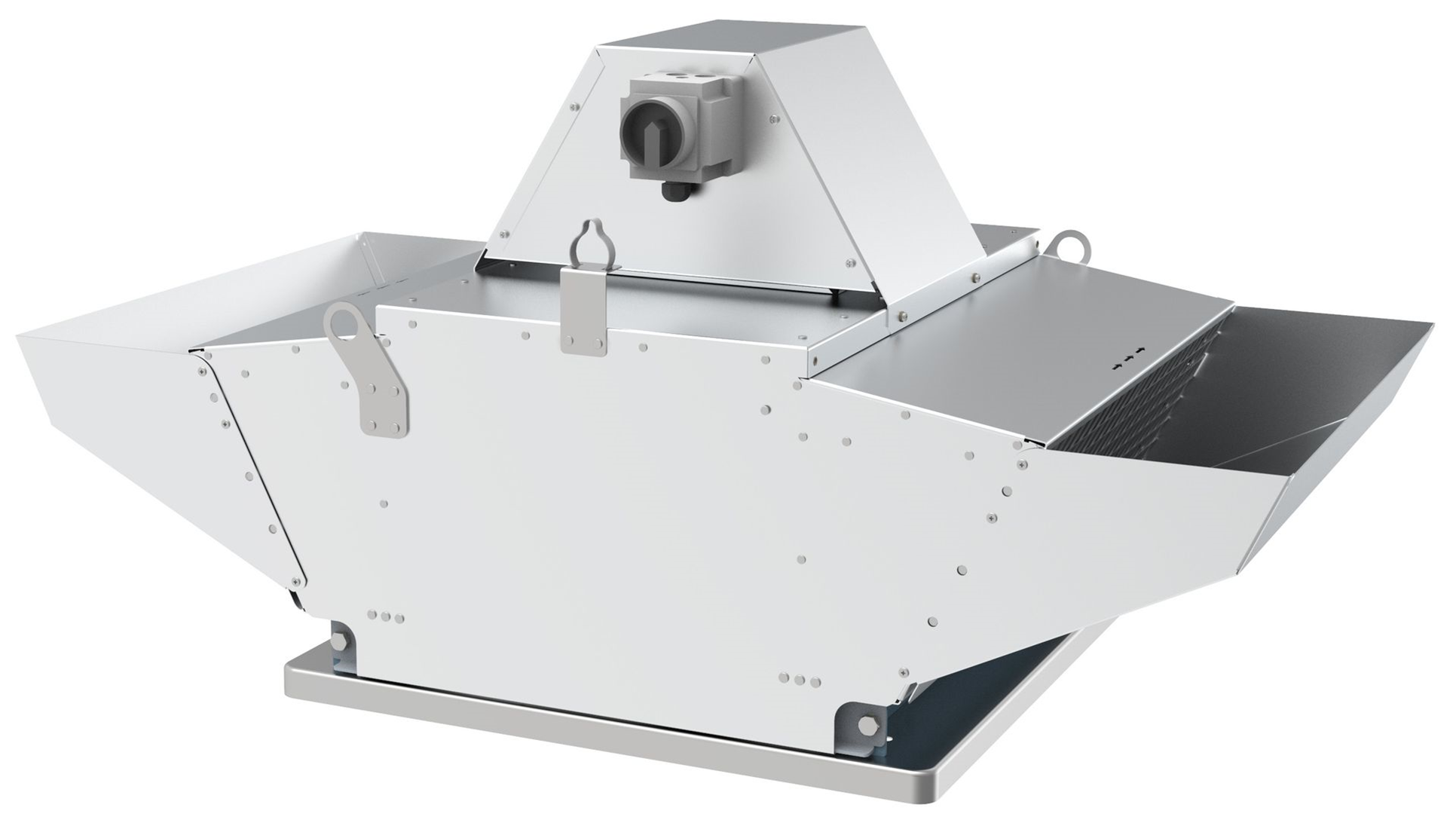 Für die Dachmontage im Freien. Das Gerät ist für den regelmäßigen, täglichen Gebrauch geeignet. Sie kann mit einem IE1-, IE2-, IE3- oder EC-Motor gekoppelt werden, der in der Lage ist, Medien mit einer Temperatur von bis zu 120°C zu belüften und bei Bedarf Temperaturen von 400°C für bis zu 120 Minuten zu bewältigen.