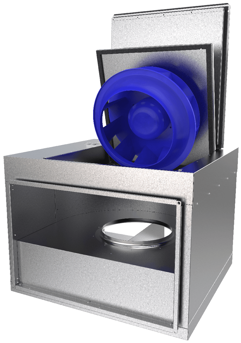 Einseitig saugende Radiallaufräder mit rückwärts gekrümmten Schaufeln. Hergestellt aus leichtem, metallisch festem, korrosionsfreiem Hochleistungs-Verbundwerkstoff . Die Laufräder sind dynamisch ausgewuchtet und mit entsprechenden Außenläufermotoren gekoppelt.