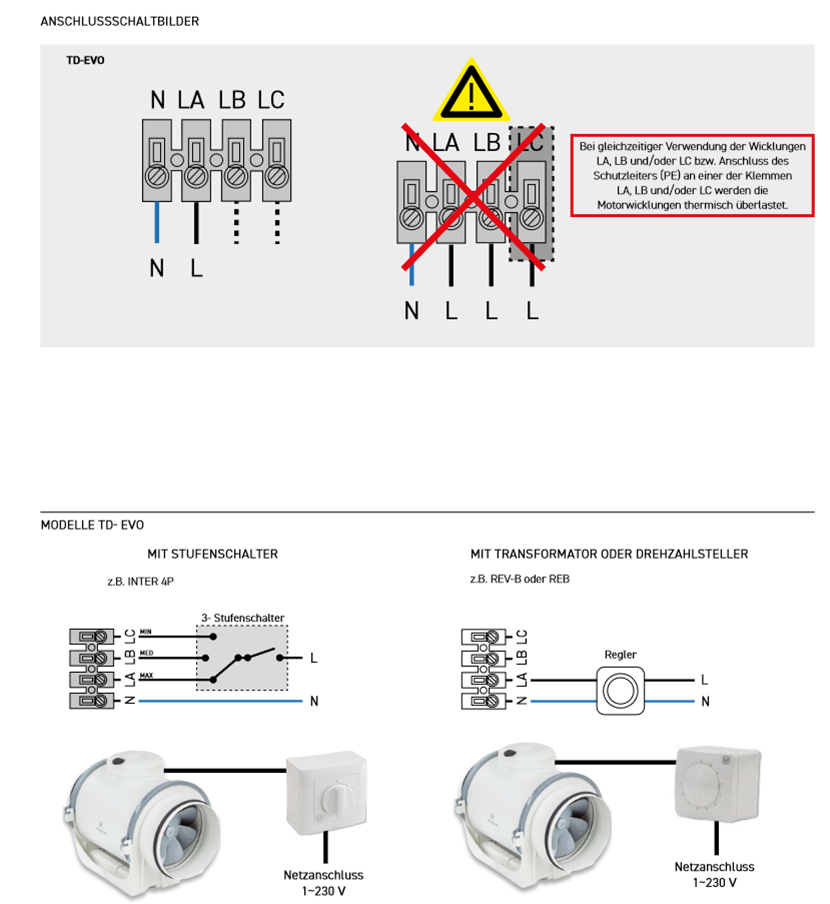 - Alle Modelle transformatorisch und elektronisch drehzahlsteuerbar (Anschluss an Klemme LA).