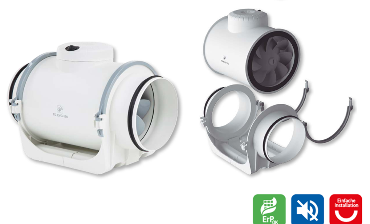Rohrventilatoren mit Volumenströmen bis 1.840 m³/h. Die neue Gestaltung des halbradialen Laufrads mit Leitschaufeln sowie die aerodynamisch und akustische Optimierung der Ventilatoren garantieren hohe Volumenströme und einen geräuscharmen Lauf bei kompakten Abmessungen.